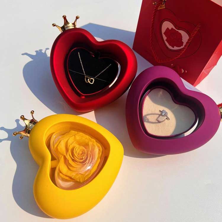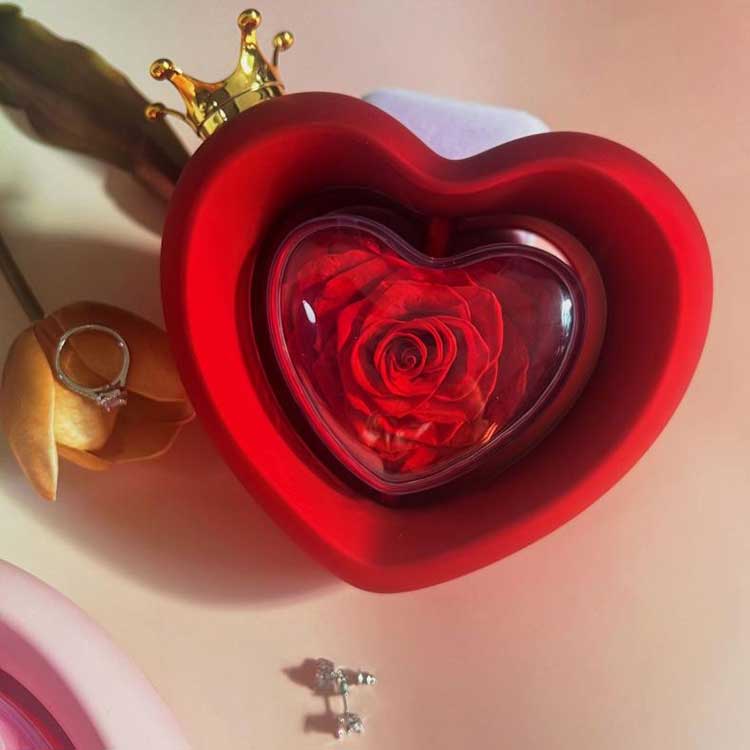 ກ່ອງເຄື່ອງປະດັບດອກກຸຫຼາບຮູບຫົວໃຈ, ຮູບຫົວໃຈເປັນສັນຍາລັກຂອງຄວາມຮັກ. ອັນນີ້ລວມເຖິງຄວາມໝາຍຂອງການຮັກແພງຕະຫຼອດໄປ.