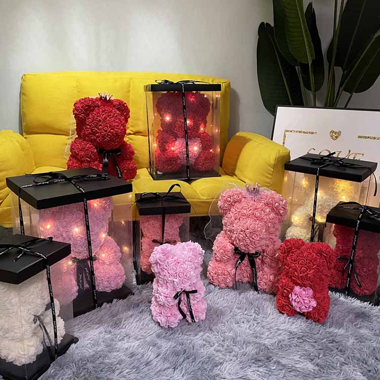 ຫມີທີ່ຮັກສາໄດ້ຖືກສ້າງຂຶ້ນຈາກດອກກຸຫລາບທີ່ແທ້ຈິງ. ຫຼັງຈາກການຮັກສາພິເສດ, ມັນກໍ່ສ້າງສີທໍາມະຊາດແລະຮູບຮ່າງຂອງດອກໄມ້ທີ່ມີຊີວິດຊີວາທີ່ຍາວນານ.